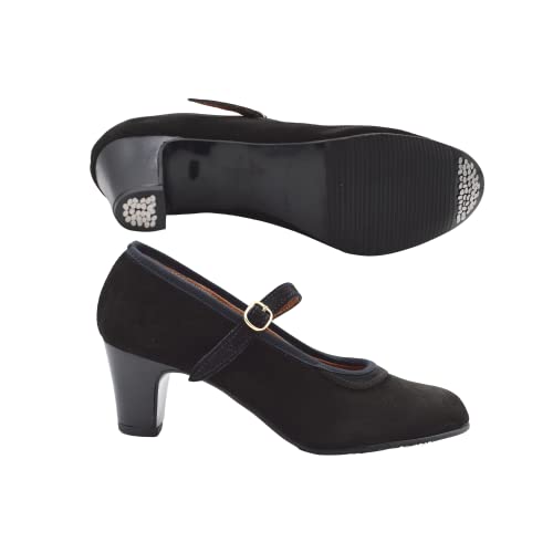 PASARELA – Zapatos de Baile Flamenco de Piel Ante Negros con Clavos para Mujer Cuero Mujer Color: Negro Talla: 38